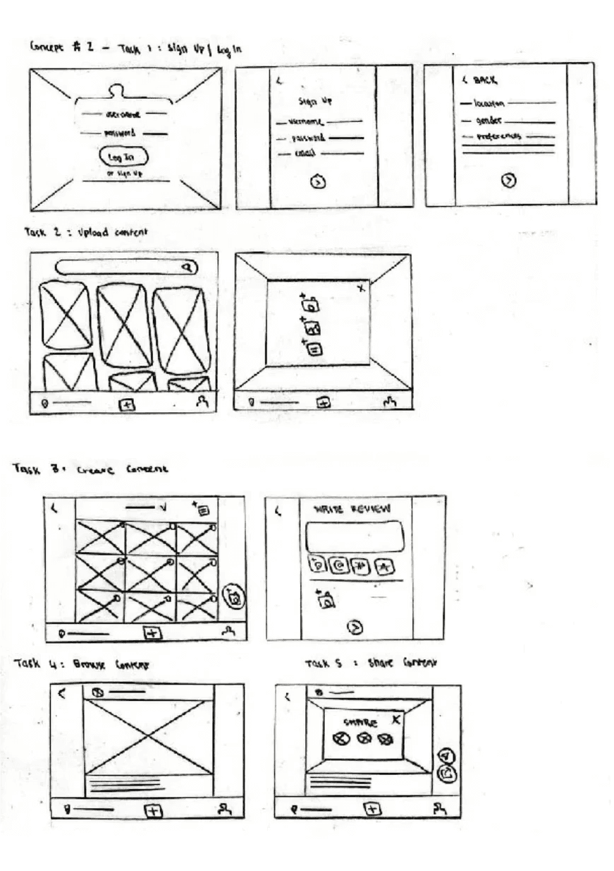 I ran think-aloud sessions with five participants to evaluate both design concepts and developed Prototype 1.0. Participants completed key tasks: signing up, posting, creating, browsing, and sharing, followed by a post-test survey.